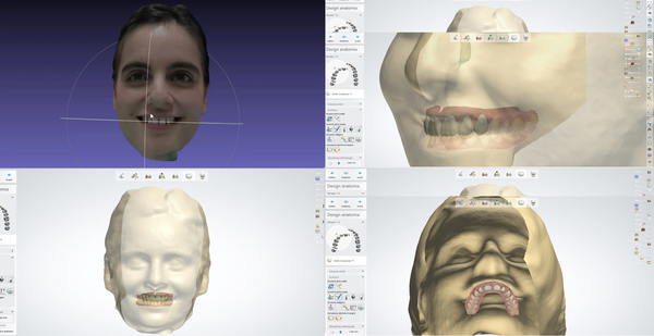 Fig. 10. Per le fasi di progetto CAD si è rivelata particolarmente utile la scansione del volto della paziente, realizzata con iPhone X (Apple, Cupertino, USA) e software Bellus 3D (Silicon Valley, USA), che è stata allineata alle scansioni intraorali, al fine di ottimizzare l’interazione tra studio e laboratorio.