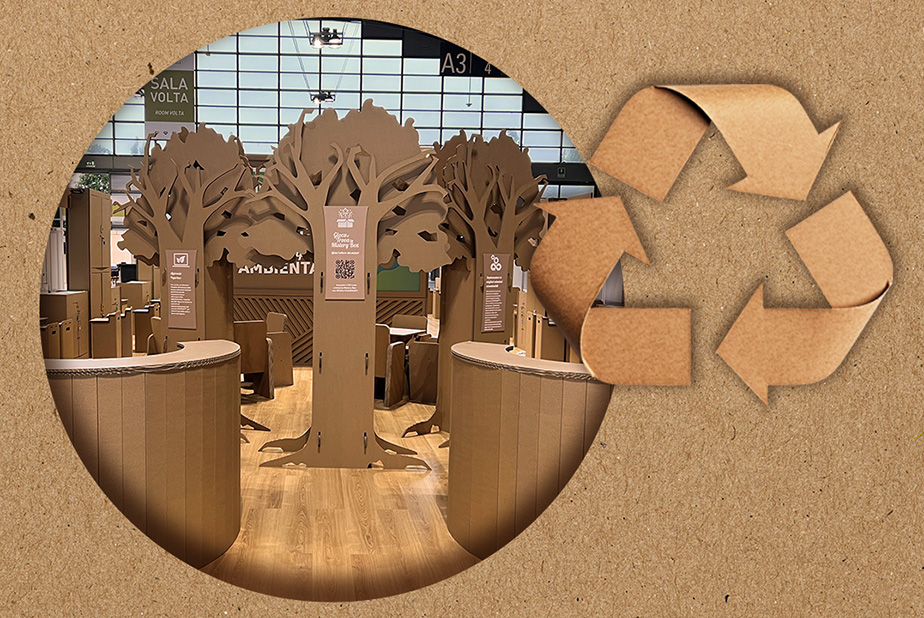 Lo stand collettivo di INFODENT®, è una vera novità per il settore dentale perché realizzato interamente in cartone riciclato e riciclabile. Una scelta innovativa, originale, ma soprattutto etica e sostenibile. Tutta la struttura e gli arredi, progettati per minimizzare l'impatto ambientale, sono facilmente smontabili e permettono di essere riutilizzati. Ogni elemento dell'allestimento è scrupolosamente realizzato con materiali naturali al 100%, garantendo così uno smaltimento rispettoso dell'ambiente a fine utilizzo.