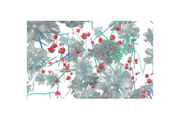 Nella tecnologia degli ibridi vetrosi si usano due tipi di vetro e una polvere di acido poliacrilico a elevato peso molecolare. Gli innovativi filler FAS altamente reattivi (in rosso) rafforzano i legami incrociati dell’acido poliacrilico e di conseguenza le proprietà fisiche sono migliori.