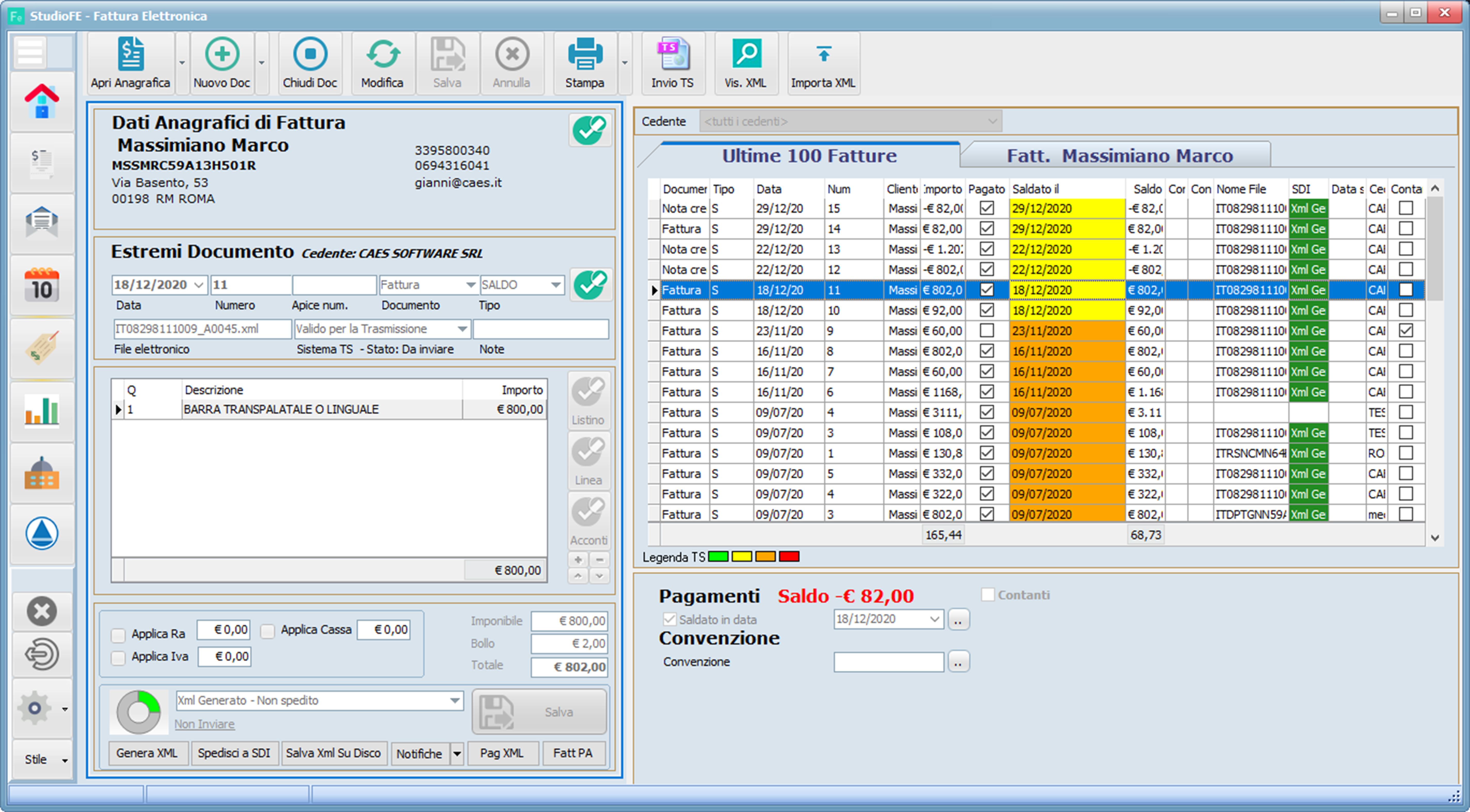 La Caes Software ha anche un piccolo software di sola fatturazione, StudioFE, dedicato agli studi medici, gratuito nell'uso e consente di fare le fatture e stampare consensi; il vantaggio è che, acquistando il servizio invio telematico TS, si può fare in autonomia l'invio al sistema TS delle fatture emesse, senza ricorrere mensilmente a risorse o consulenti esterni.