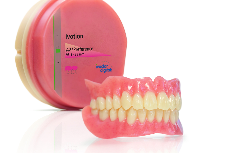 Nel 2020, con Ivotion Denture System, Ivoclar Vivadent ha stabilito un processo di lavoro completo per la realizzazione digitale di protesi rimovibili di prima qualità da un singolo disco monolitico. Questa soluzione combina componenti di processo su misura con materiali di prima qualità e sofisticate tecnologie. Il cuore del sistema è l'esclusivo disco Ivotion CAD/CAM che permette di fabbricare protesi monolitiche personalizzate in un solo processo di fresatura. Il concetto del sistema insieme al nuovo disco monolitico Ivotion ha rivoluzionato la realizzazione di protesi rimovibili con un intelligente flusso di lavoro Digital Denture, dalla consultazione del paziente (IvoSmile) ai processi clinici, dal design intuitivo (3Shape Dental System) ed il disco monolitico (Ivotion) alla fabbricazione (fresatrice PrograMill), fino ad arrivare al follow-up. Questo flusso di lavoro ben definito consente risultati rapidi, efficienti e coerenti.