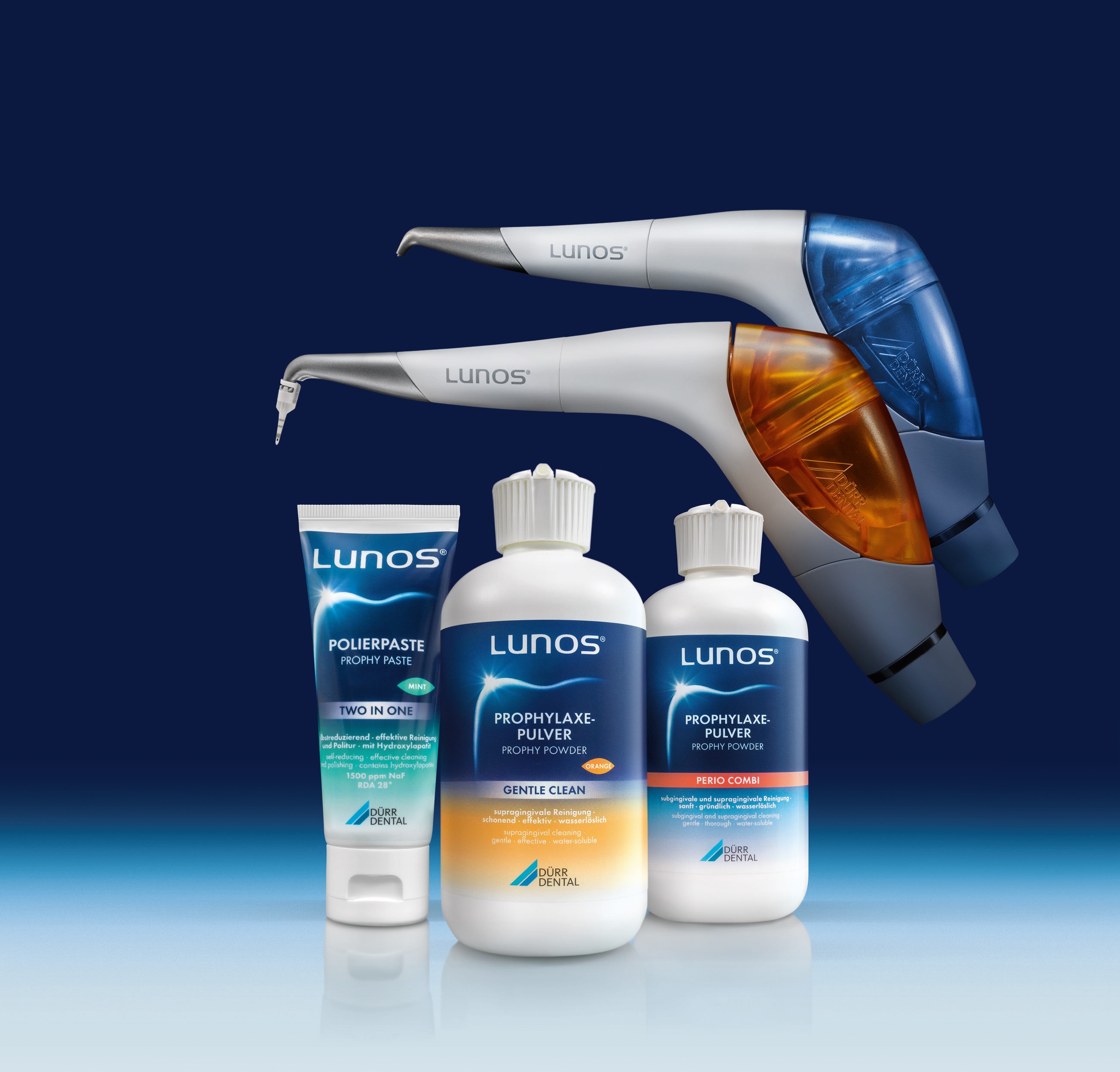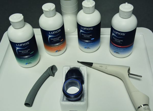 Il manipolo a getto di polvere MyLunos® (fig. 2) ha una manutenzione semplice e veloce, con acqua e adattatori in dotazione. Può essere anche sterilizzato a 134° in tutte le sue parti, completando così in maniera ottimale il ciclo di igiene.