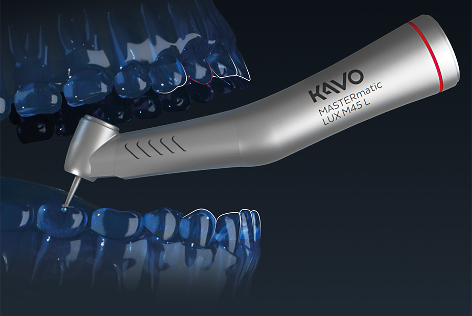 Con questo nuovo strumento, i dentisti affezionati a KaVo hanno ora a disposizione un'altra straordinaria combinazione di testina-angolo per un trattamento ancora più ergonomico. Lavorare nella regione molare è sempre stato impegnativo, soprattutto nei pazienti con un'apertura limitata della bocca. L'esclusiva combinazione di testina/angolo del nuovo MASTERmatic LUX M45 L consente un trattamento ergonomico ed efficiente nella zona molare sia nella regione mascellare che mandibolare.