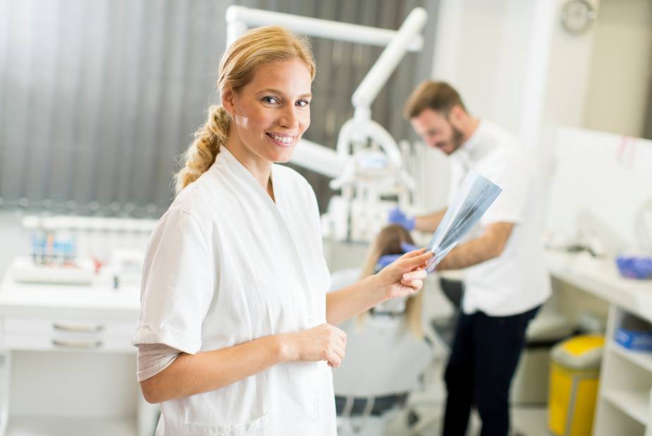 - 300 ore di formazione teorica in aula, con focus su assistenza alla poltrona, protocolli igienico-sanitari e competenze comunicative con il paziente;
