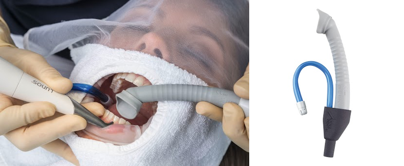 L’utilizzo di un’efficace aspirazione ad alto volume è assolutamente essenziale quando si effettua lo scaling a ultrasuoni e/o l’air polishing. Il gruppo di lavoro SDCEP* ha recentemente convenuto che l’utilizzo dell’aspirazione ad alto volume, durante le AGP odontoiatriche, può ridurre il rischio potenziale di trasmissione del Covid-19. (4) Questo tramite un dispositivo per l’aspirazione intraorale che riesca ad aspirare un elevato volume d’aria in un breve lasso di tempo.